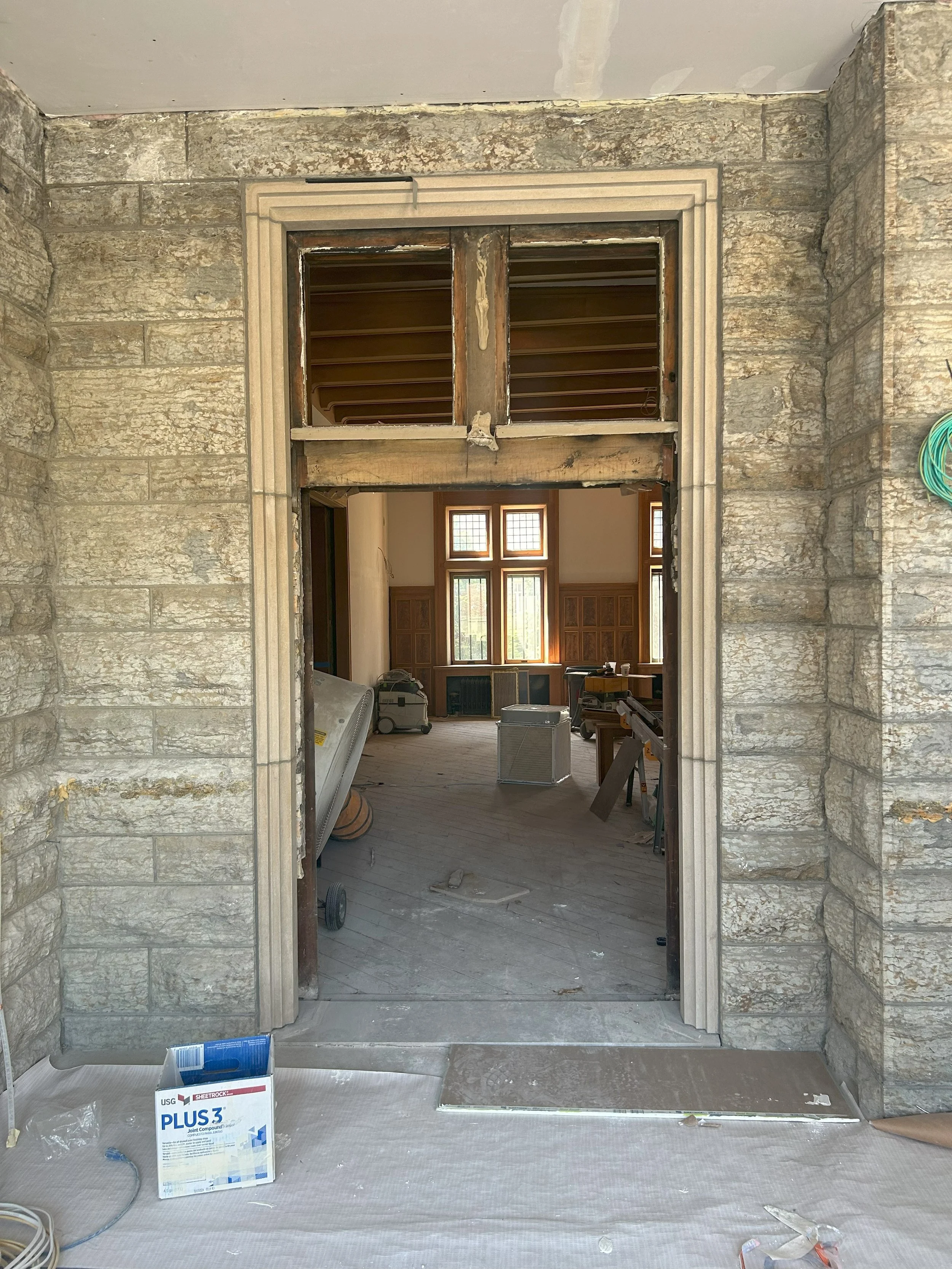 Kate Roos Design alongside Partners 4 Design were awarded the design of the Kitchen and Scullery. These rooms, constructed almost entirely of rock-faced Platteville limestone, are located in what used to be an exterior porch off of the porte cochere. We worked closely with the homeowners to ensure the design was parallel in grandeur to the turn-of-the-century home.