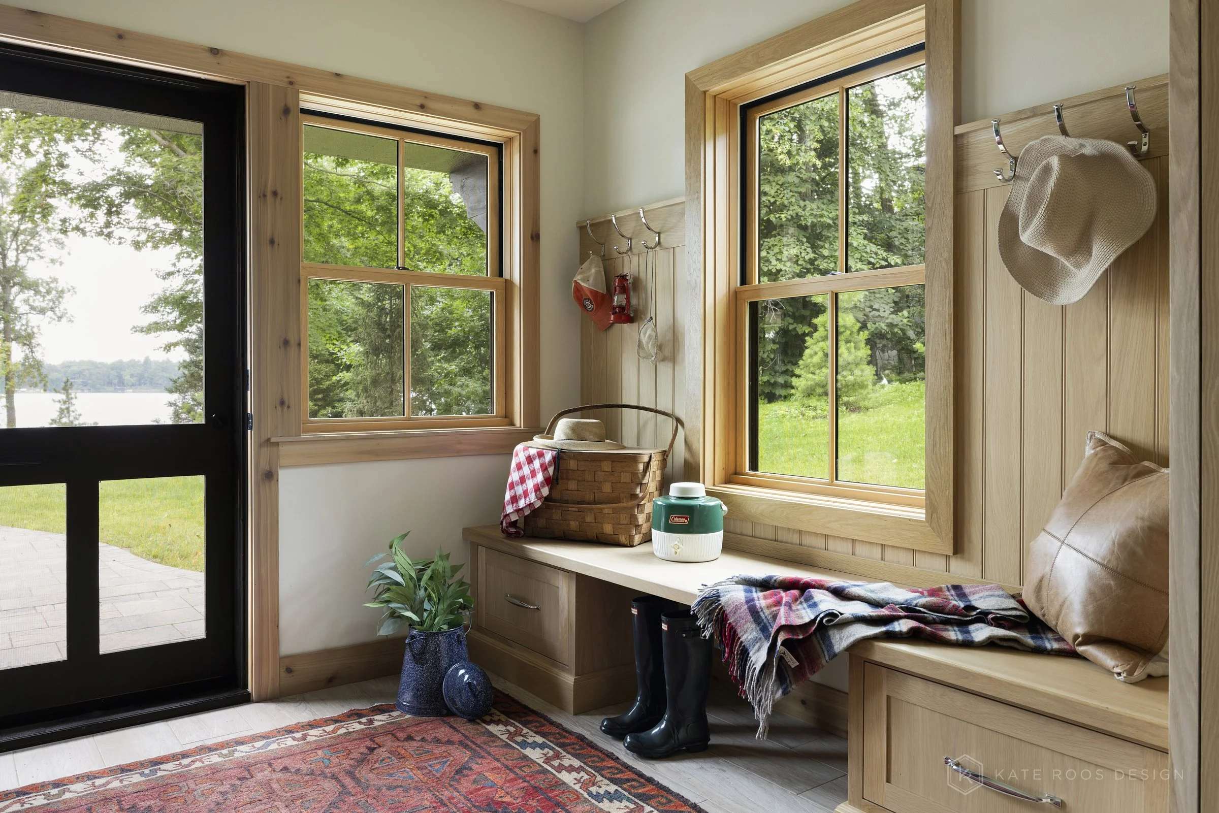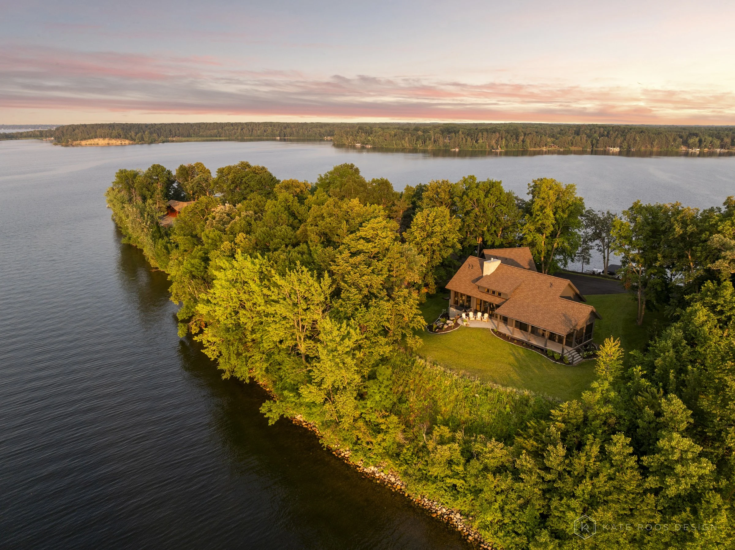 A couple looked for four years for a cabin before finding this secluded, nearly one-acre lot set on a peninsula on a northern Minnesota chain of lakes. Reluctant to build, they couldn't resist the beauty of the site with big southerly sunset views on one side, a protected bay on the other, and mature stands of pines and hardwoods.