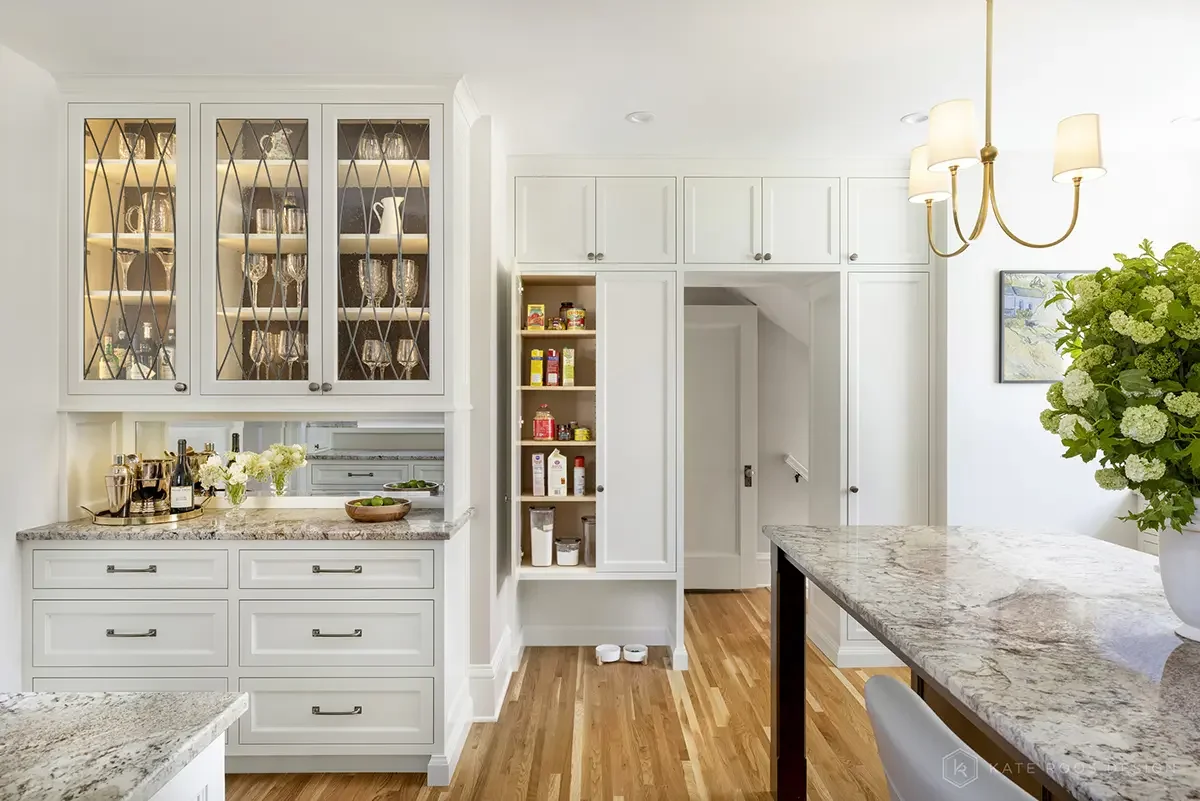 The mix of classic lighting, inset cabinetry, and graceful millwork results in a space that feels both, a seamless expression of comfort, craftsmanship, and enduring design.