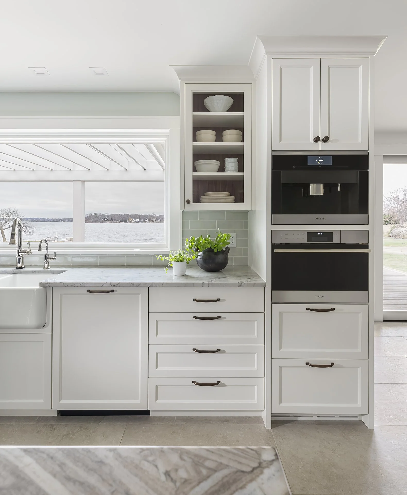 The owners of this lake property love to host and wanted to create a space focused on spending quality time with their family. Maximizing the views of the lake outside the kitchen was a high priority, as well as having enough space inside for everyone to cook and dine together. These homeowners needed welcoming and efficient gathering space, accommodating everyone comfortably.